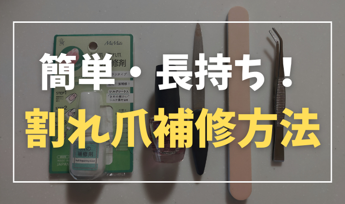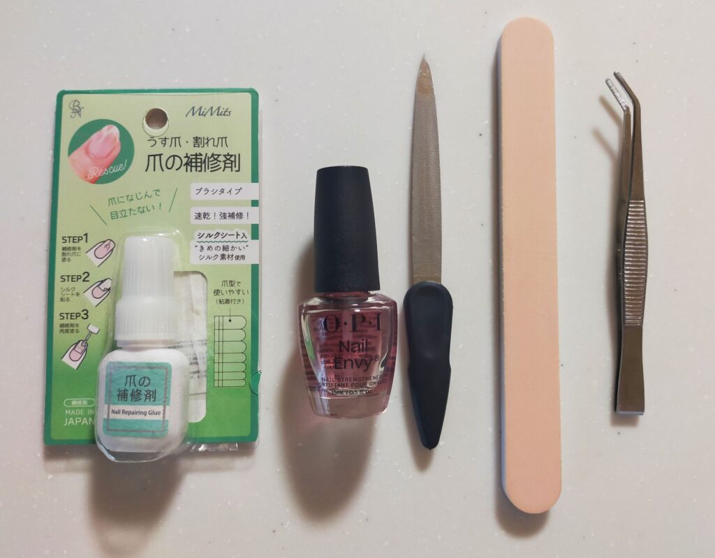 こちらの記事では、実際に使っている爪補修アイテムと、修復手順をご紹介します。