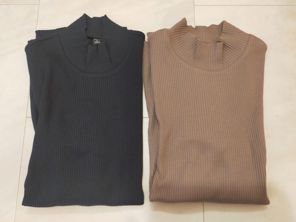 長袖の季節は無意識にリブハイネックTを手に取っています。
